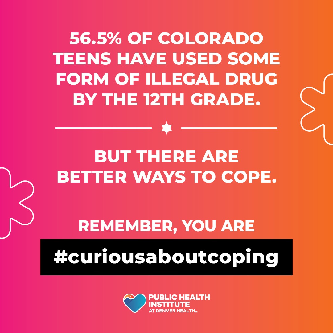 56.5% of Colorado teens have used some form of illegal drug by the 12th grade. But there are better ways to cope, including meditation, exercise, art, and more. Even a small change can make a big difference. Remember, you are #strongerwithout. Learn more on our website – link in bio! #curiousaboutcoping
